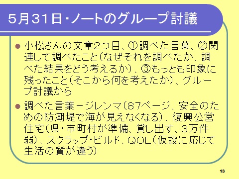 5月31日・基礎ゼミ-復興、防潮堤、社会の分断