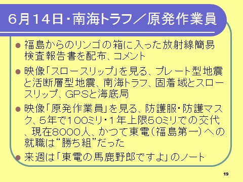 6月14日・基礎ゼミ-南海トラフ/原発作業員